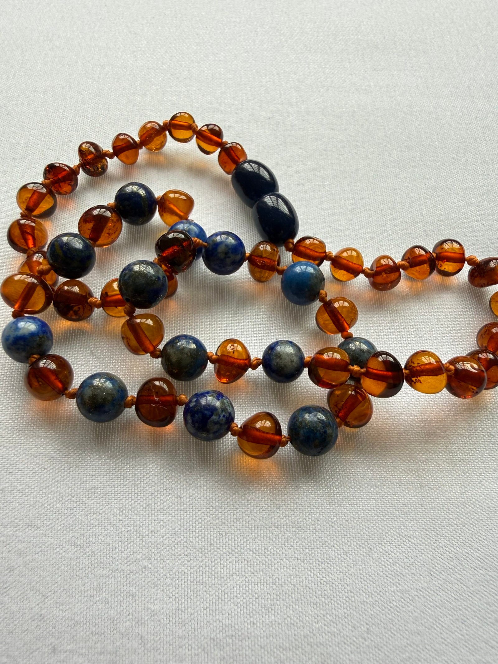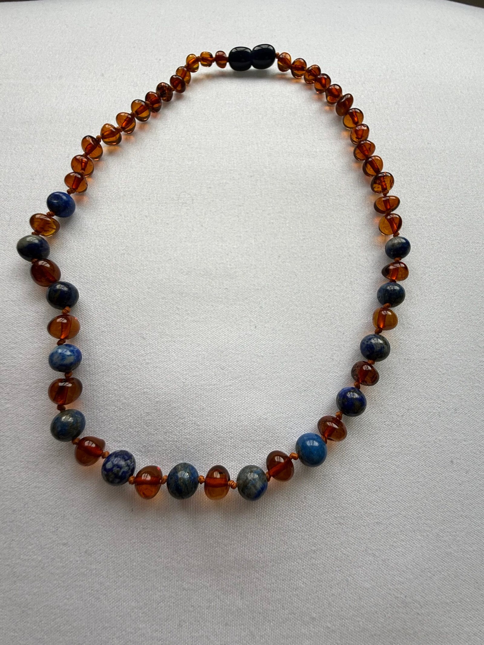 Collar de Amabar Cognac y Lapizlazuli, disponible en 38cm (gargantilla ) o 45 cm collar.